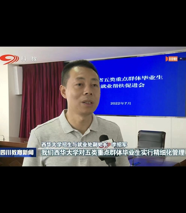 当天,四川教育电视台科教频道以“牢记嘱托,感恩奋进,担当实干”为题报道了本次重点群体毕业生就业帮扶促进会。招生与就业处副处长李绍军就如何做好重点群体毕业生就业帮扶工作接受了四川教育电视台记者采访。