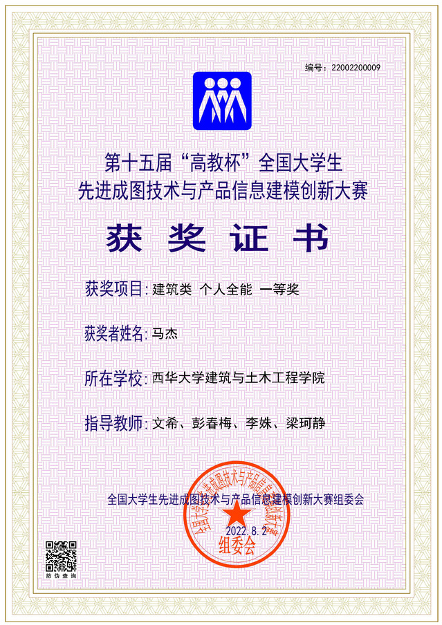 备赛期间,文希、彭春梅、李姝、梁珂静四位指导教师坚持以赛促学、以赛促改,强调将专业知识同实践教学一起融入到赛事训练中。训练过程中,马杰同学刻苦备赛,不断突破自我,力争做到最高水平。大赛设立机械、建筑、道桥、水利四个竞赛类别,在机械类赛道上,马杰一路披荆斩棘,从10344名选手中突破重围,以全国第九名的成绩斩获建筑类个人全能一等奖,充分反映了学校图学基础教学水平、学生图学基础应用能力、竞技比赛组织能力和指导教师的专业技术能力。