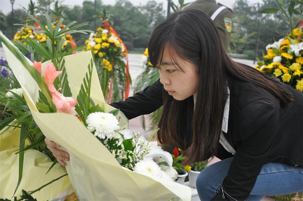 中午12时许,参加活动的同学在纪念碑下齐唱国歌并默哀沉思,校国旗护卫队员向人民纪念碑敬献花篮后,其余人员依次上前献花鞠躬,随即到烈士纪念馆内参观缅怀。