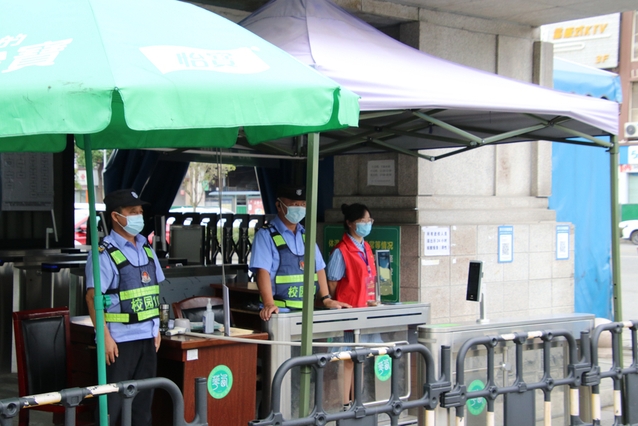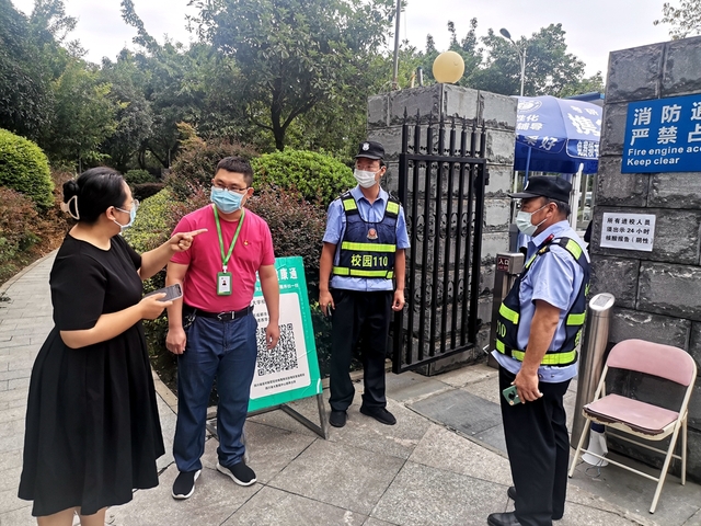 安保人员和青年志愿者一起,坚守校园的“第一道防线”