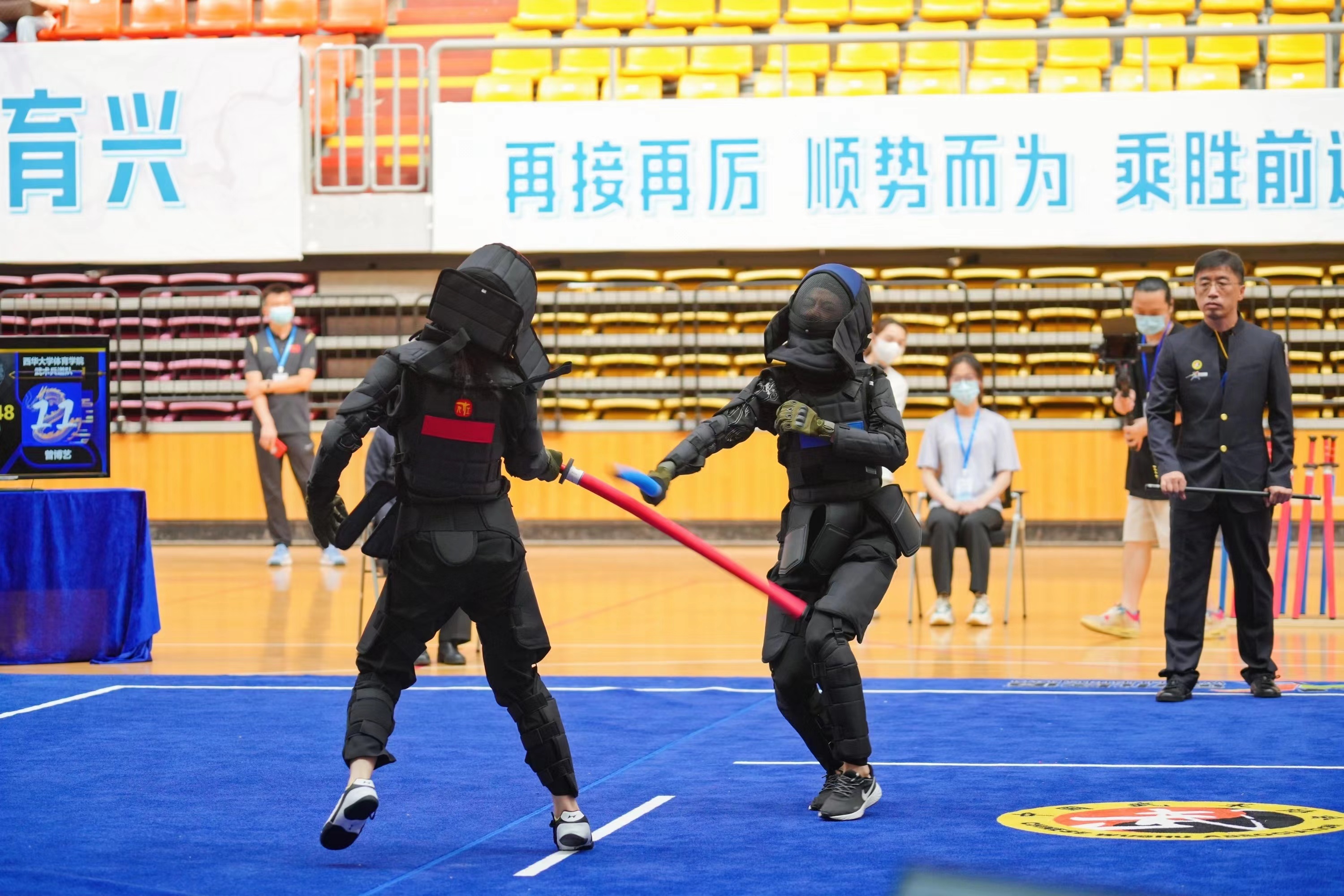 近日,2022年全国首届武术兵道(短兵)锦标赛在浙江省湖州市体育馆举行。本次比赛由国家体育总局武术运动管理中心、中国武术协会、浙江省体育局、湖洲市人民政府主办,湖洲市体育局承办。比赛为期5天,分为个人赛和团体赛。根据参赛选手体重,个人赛中设置男子组、女子组各8个级别。来自全国28个省市行业体协、大专院校以及中国武术协会会员单位等80支队伍,700多人参加了本次比赛,参赛选手年龄跨度为16至40岁。