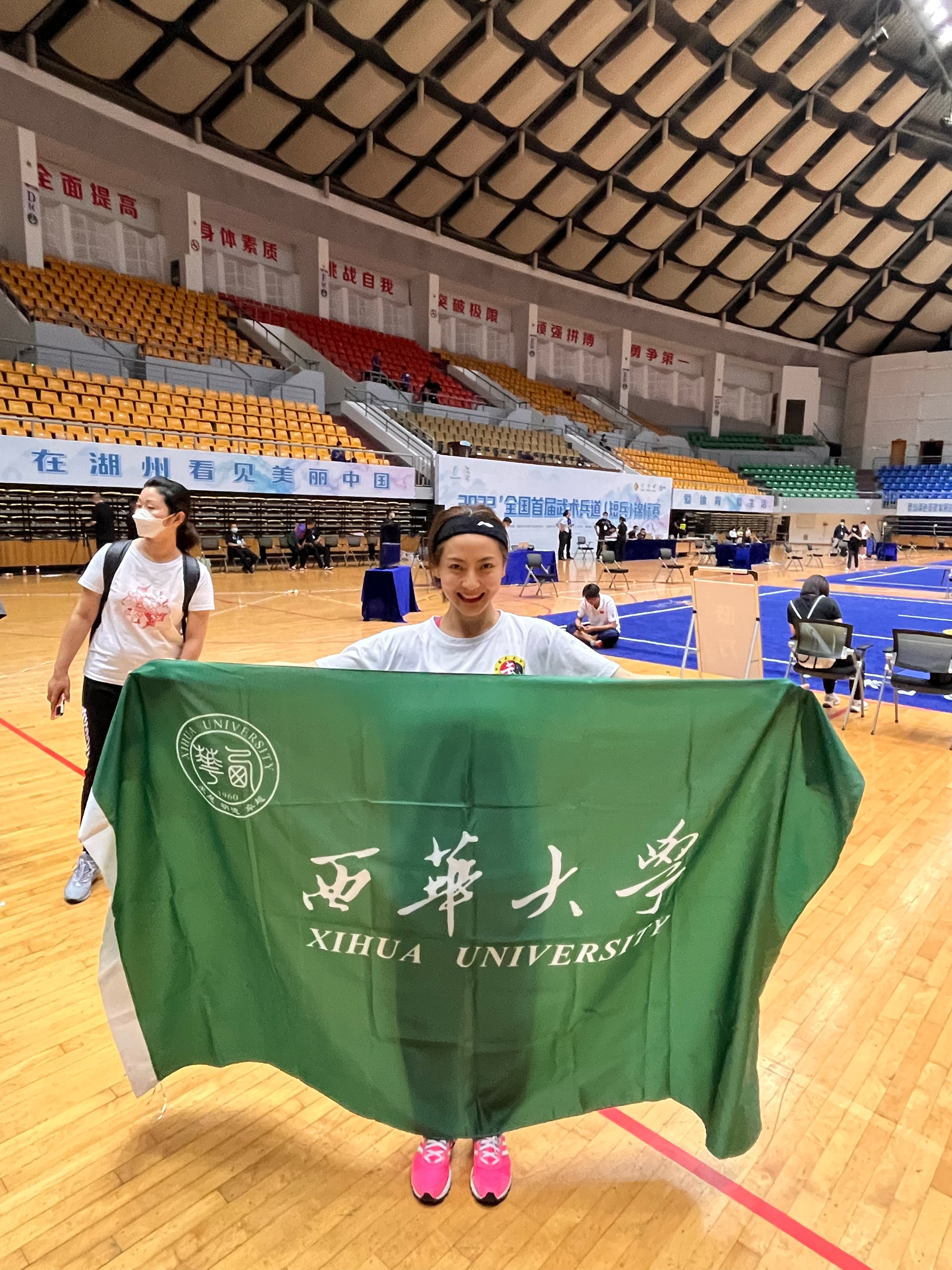 作为年龄最大的个人赛女子选手,体育学院曾博艺老师代表我校参加此次全国锦标赛48kg级竞技组个人赛。经过连续5场比赛的紧张激烈角逐,最终曾博艺老师凭借顽强的拼搏精神和沉稳合理的技战术运用,荣获本届武术兵道(短兵)锦标赛个人赛女子48kg级铜牌。