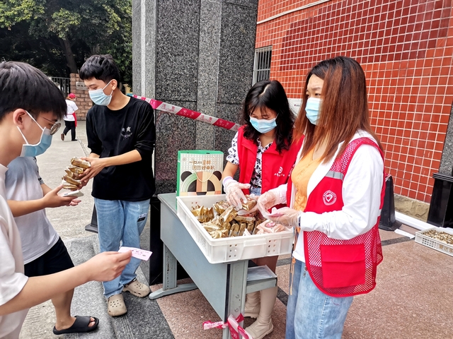 志愿者为同学们发送月饼