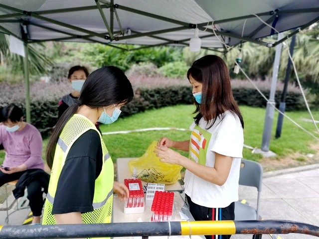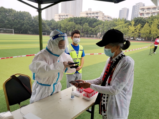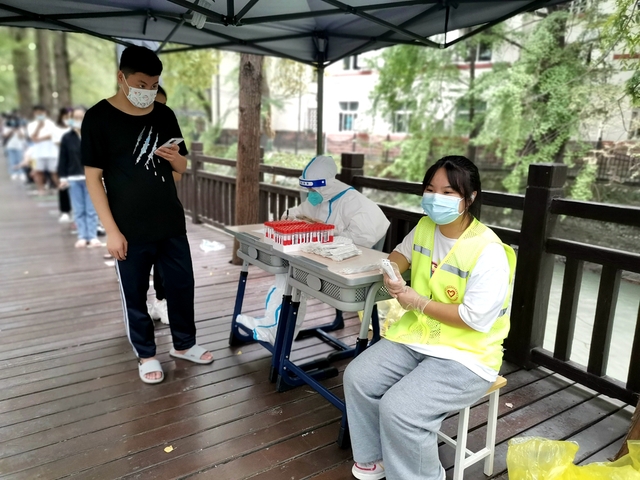 学校党委组织部向全校党员发出倡议后,刚刚动过手术、家有两个小孩的发展规划与学科建设处的曾雅霓立即报名参与志愿服务,一直坚持在核酸检测的第一线。谈及感受,她说:“通过几天的扫码志愿服务,充分体验了‘大白’工作的重要和不易。不易,是因为虽然扫码工作更多的是机械重复,但需要认真核对试管、人数、人员信息是否正确,需要与医生配合采集进度,人流量大时曾一上午录入过1430人信息。很荣幸能有机会参与学校的抗疫工作,能为师生们做一点力所能及的事情,每天半天的扫码工作也就不觉得辛苦,觉得开心,也很有意义。”