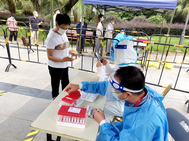 曾雅霓在核酸检测现场扫码