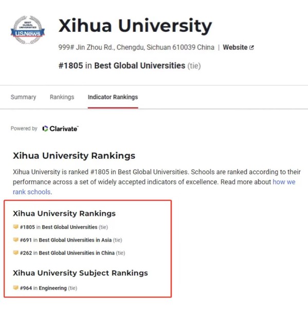 10月25日,US News发布最新的2023世界大学排行榜。今年的全球大学工程学科排名前1000名中,中国内地高校共有193所上榜,四川7所。其中,我校工程学科排名居全球第964名,全国第187名,四川第7名,在省内排名较去年提升1位。学校综合排名位居全球第1805名,亚洲第691名,全国第262名。