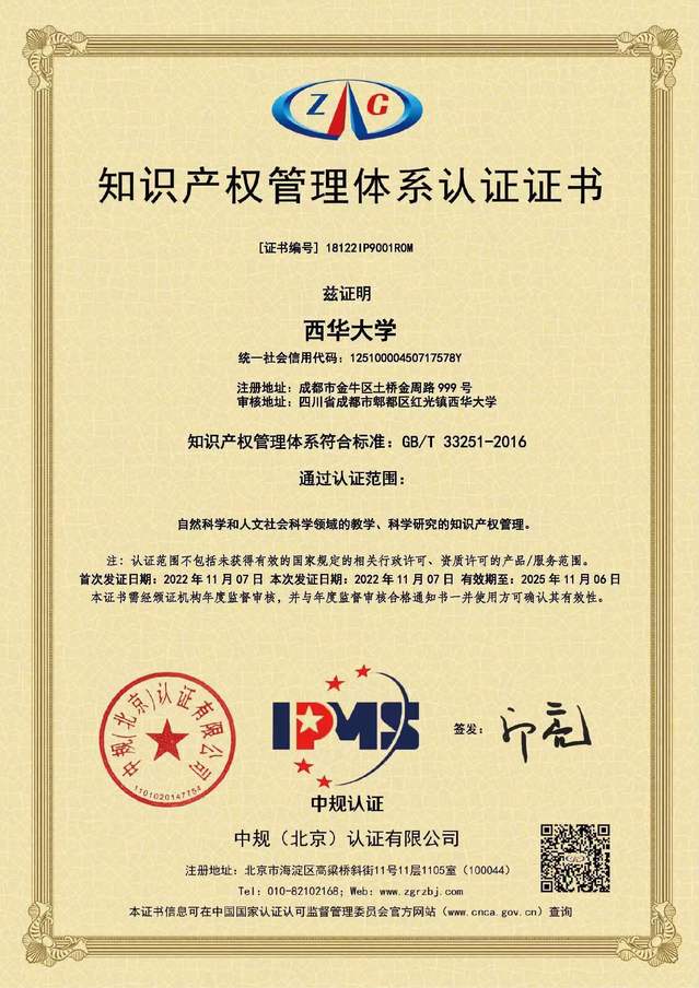 11月7日,我校知识产权贯标通过《高等学校知识产权管理规范》国家标准审核认证,并取得了中规(北京)认证有限公司颁发的认证证书,是全省首家通过知识产权“贯标”认证的高校。