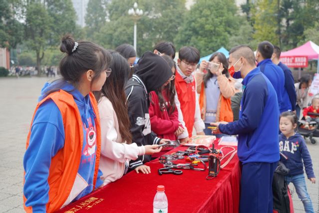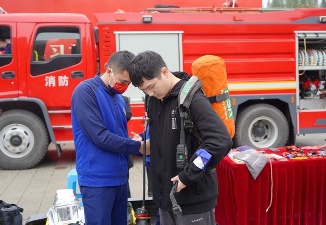 11月9日,学校邀请郫都区消防大队红光中队、四川安防协会、成都庆军科技有限公司到校进行消防安全教育宣讲,并开展消防器材展示、消防安全宣传。消防车、高空灭火无人机、清障救援无人机等各种装备在现场亮相,师生零距离接触消防“黑科技”。在展示现场,消防员向师生传授了自防自救技能、日常防火注意事项,详细讲解了各种消防器材装备在日常救援过程中发挥的功效,并手把手指导学生使用。应急管理学院2020级学生汪旭彬在消防员的帮助下,穿戴上空气呼吸器,“背上去有点重,感觉一下子就进入到烟雾环境中了,挺有实感的。”他说。现场不时有学生过来询问,消防员一一展示日常救援使用的消防器材,同学们纷纷表示,这样的展示有助于增强消防安全意识,了解掌握必备的逃生技能。