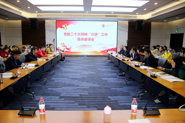 会上,党委宣传部、教务处、研究生院等职能部门主要负责人围绕扎实推进党的二十大精神“三进”提出了指导意见。党委宣传部部长山述兰传达学习了中央、省委、教育工委关于党的二十大精神“三进”工作要求,并就学校印发的《深入学习宣传贯彻党的二十大精神工作方案》的有关工作作了说明。教务处处长蒋珍菊从教学内容、教学方式方法改革、教学效果检验等三个方面对“三进”工作提出了建议,要创新教学方法,切实将党的二十大精神融入到思想政治理论课的教学各个环节、全过程。研究生院院长陈广贵从研究生教学的角度对党的二十大精神“三进”提出建议,提出要在内容和教学方式上注意与本科生的差异,针对研究生的特点,讲深讲透教育、科技、人才在全面建设社会主义现代化强国、全面推进中华民族伟大复兴中的基础性、战略性作用,讲清楚高端人才对解决″卡脖子"问题、掌握核心关键技术的作用。