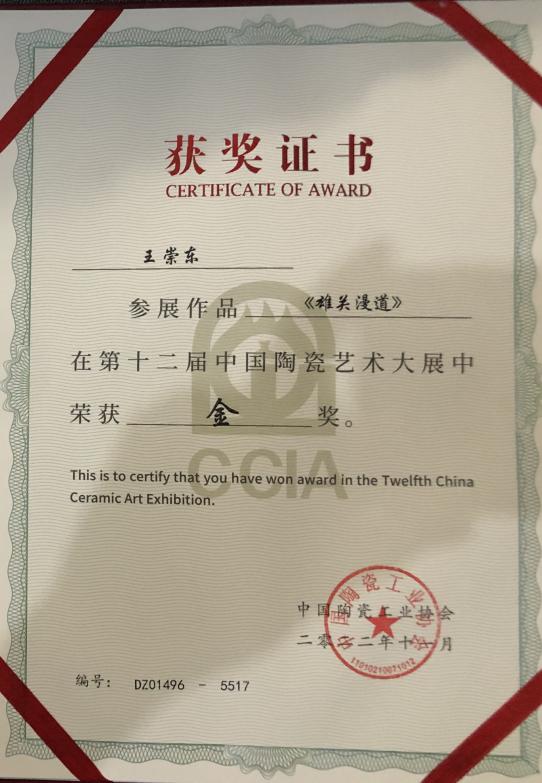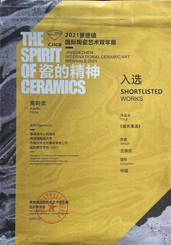 11月7日至10日,由中国陶瓷工业协会与景德镇市人民政府联合主办的“第十二届中国陶瓷艺术大展”在景德镇国际会展中心举行。美术与设计学院王崇东教授报送的现代陶艺作品《雄关漫道》从全国四千余件选送作品中脱颖而出勇夺金奖。