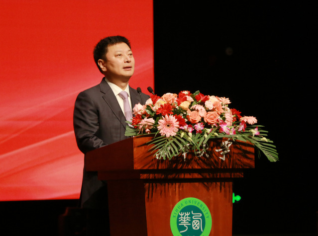 他勉励全体新生:做“求是者”,以学为本,求真学问、练真本领,勇攀科学高峰,学会纵深思考,为未来事业发展打好坚实的专业基础;做“明德者”,崇德明志,“扣好人生的第一粒扣子”,厚植家国情怀,把小我融入祖国和人民的大我之中;做“卓越者”,以昂扬奋进的姿态,在求知求学求实的征程中不断完善自我、超越自我。