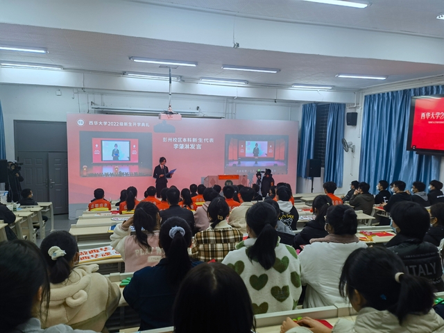 为深入学习贯彻党的二十大精神,加强师生爱党爱国爱校教育,充分发挥典礼文化育人作用,11月17日,2022 级新生开学典礼暨第十五届西华秋韵迎新文艺晚会隆重举行。本次开学典礼暨晚会采取“一校三地”、线上线下相结合的方式,郫都校区、宜宾校区、彭州校区三个主会场同步举行。