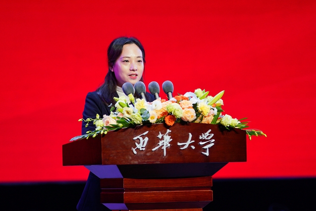 宜宾市委副书记、市长廖文彬在讲话中表示,西华大学是最早与宜宾合作的高校之一,校地精诚合作、携手并进,结下了深厚的情谊,取得了丰硕的成果。目前,西华大学宜宾校区已入驻11个学院的34个专业,吸引了全国8300余名优秀青年来宜求学;西华大学宜宾科技创新中心的建成,促进创新资源加速汇聚;“四川智能及新能源汽车产业学院”成功入选全省首批现代产业学院,为宜宾市经济社会发展提供了坚实的智力和人才支撑,成为了校地合作的典范。宜宾市将一如既往服务好学校发展,全力支持西华大学宜宾校区项目建设、学科设置、引才育才、科研创新、成果转化,切实推动学校高质量发展。他希望同学们把个人的理想追求融入党和国家的事业之中,以青春之我、奋斗之我,为民族复兴铺路架桥,为祖国建设添砖加瓦;珍惜光阴、努力学习,勇立时代潮头,大胆追逐梦想,在每一次挑战中磨炼志气、骨气、底气,不负时代赋予的使命担当。