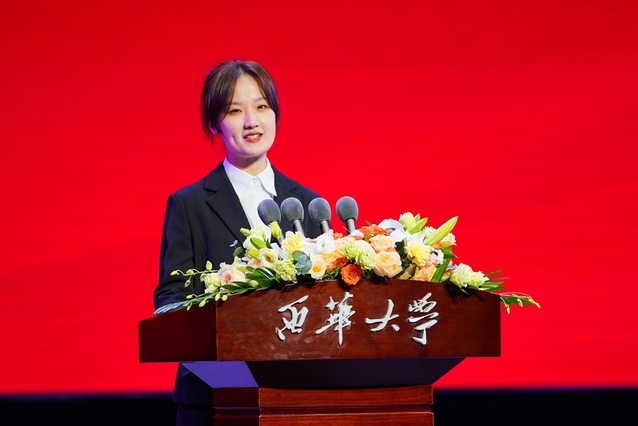 食品与生物工程学院彭川宁作为郫都校区研究生新生代表发言。站在新的征程、新的起点上,他倡议大家珍惜时光、志存高远、爱党报国、胸怀天下,在学术的海洋里徜徉,在研究的沙场中驰骋,在各自的学科领域里闪闪发光,在美丽的西华校园里超越自我。
