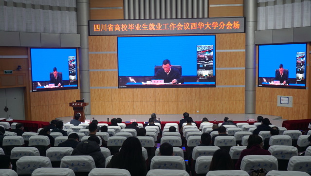 学校以视频形式在郫都校区、宜宾校区两个校区分会场同时参加。校长刘树根,校党委副书记张力,副校长费凌,宣传部、学工部、校团委、宜宾校区党工委、教务处、研究生院等部门主要负责人,各学院主要负责人、分管就业工作负责人、就业联系人和2023届全体毕业班辅导员,招生与就业处全体人员参加视频会。