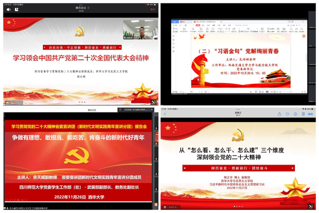 学习宣传贯彻党的二十大精神是当前和今后一个时期学校的首要政治任务。下一步,西华大学团委将持续组织开展多形式、分层次、全覆盖的学习宣传教育活动,引导广大青年深学细悟党的二十大精神。