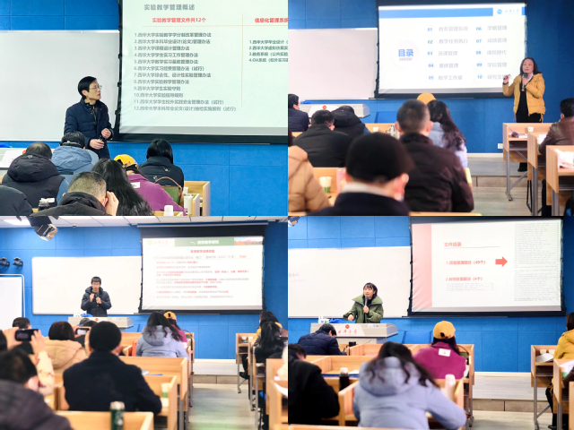 会上,教务处各分管副处长分别对各自分管工作进行了业务培训。魏金成就实践教学、考试和教材管理工作做了详细介绍;付成华对学籍和教学运行管理工作做了详细阐述;熊朝坤就宜宾校区教学管理工作进行了培训;陈明军对教育教学研究和创新创业管理工作作了介绍;刘雪梅对教师发展和教学质量管理工作进行了逐一讲解。