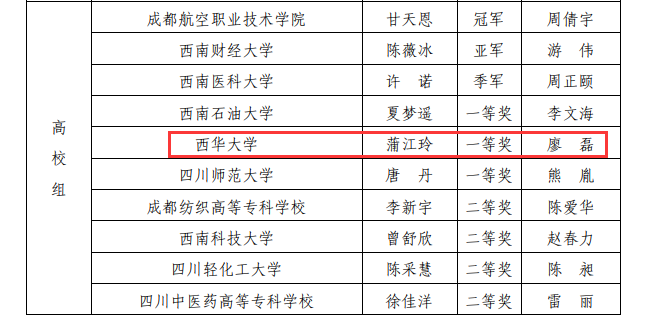 近日,四川省委教育工委、教育厅公布了第七届全省学生“学宪法 讲宪法”活动获奖名单。我校法学与社会学学院教师廖磊指导的蒲江玲同学在第七届全省学生“学宪法 讲宪法”活动省级决赛知识竞赛中荣获高校组一等奖,在省级本科高校大学生竞赛中荣获知识竞赛类二等奖。此外,我校荣获第七届全省学生“学宪法 讲宪法”活动高校优秀组织奖。