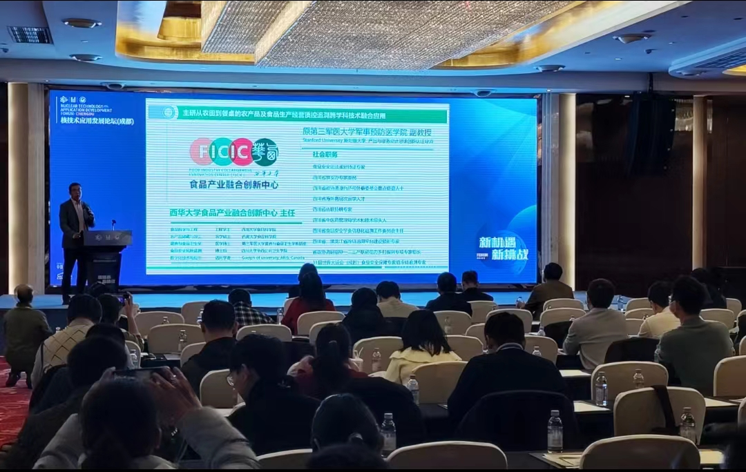 近年来,随着国家对核技术应用产业发展的日益重视,核技术应用产业迎来了前所未有的机遇和挑战。为把握此次机遇,迎接挑战,中国同位素与辐射行业协会辐射加工专委会、中国原子能农学会辐照加工与应用专委会联合四川省原子能研究院共同主办了核技术应用发展论坛,中国工程院院士夏佳文等多名院士莅临指导交流。西华大学食品产业融合创新中心主任唐勇教授受邀在大会上作相关报告,介绍了西华大学现代食品冷杀菌技术研究中心开展的相关工作助力核技术在食品产业的高质量应用发展概况。