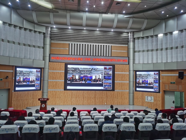 2月28日下午,教育部组织召开全国2023届普通高等学校毕业生就业工作第二次调度视频会,教育部高校学生司司长孙海波、副司长吴爱华出席会议并讲话。学校党委副书记张力,招就处、学工部、教务处、研究生院等部门负责人,各学院分管就业工作副书记、就业联系人和2023届全体毕业班辅导员(班主任),招就处全体人员在四教报告厅通过网络视频观看会议直播。