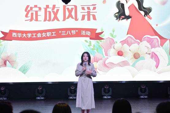 庆祝活动在经典汇美好生活体验中心轻松闲适的音乐自助餐吧拉开帷幕,在享受完精致的自助餐后,老师们愉悦轻松地在咖啡休闲区进行茶歇交流并观看精彩演出,火辣热烈的拉丁舞表演引人入胜,外国语学院罗雨虹老师的一首《至少还有你》将全场气氛拉至高潮,宣传部王蜀苏老师精彩的诗歌朗诵《你是人间的四月天》引起老师们强烈的共鸣,现场掌声雷动。校工会副主席蓝进与全体女职工交流女职工工作,向大家展示了校工会近年女工工作概况以及取得的成果,诠释了女性角色的自尊、自强、自立,表达了对全体女职工的祝福:保持女性力量的爱与温柔,眼中永远闪烁光芒,心中藏有希望,活出更多的精彩。