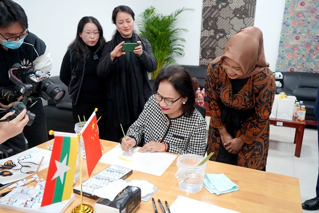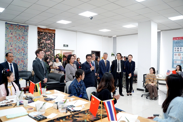 活动现场气氛热烈。周浩黎大使与夫人艾茜薇女士同来自美术与设计学院和国际教育学院的中外学子进行交流互动,并亲自参与到作品创作过程中。美术与设计学院的同学向来访嘉宾赠送了由他们自己设计制作的熊猫玩偶礼物。中国国宝熊猫玩偶穿着印尼传统巴迪克服饰,体现了中印尼艺术文化的交流与融合,蕴含着中印尼人民之间的深厚情谊。