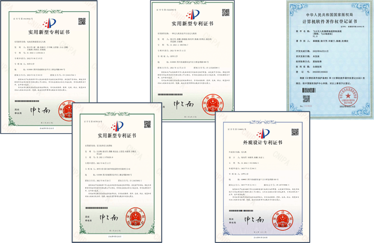参赛作品由来自计算机与软件工程学院、西华学院、电气与电子信息学院、能源与动力工程学院、航空航天学院、机械工程学院等多个学院同学及老师组成的创新团队历时三年精心打造,由航母式机群无人机设计+子母无人机换电装置+地面站控制系统共同构成的完整无人机群协作方案,从底层开发设计线上飞行管理系统,并上线了团队官网,目前团队已经获得4项专利授权,1项专利通过初步审查,4项发明专利等待实审,软件著作权授权1件。