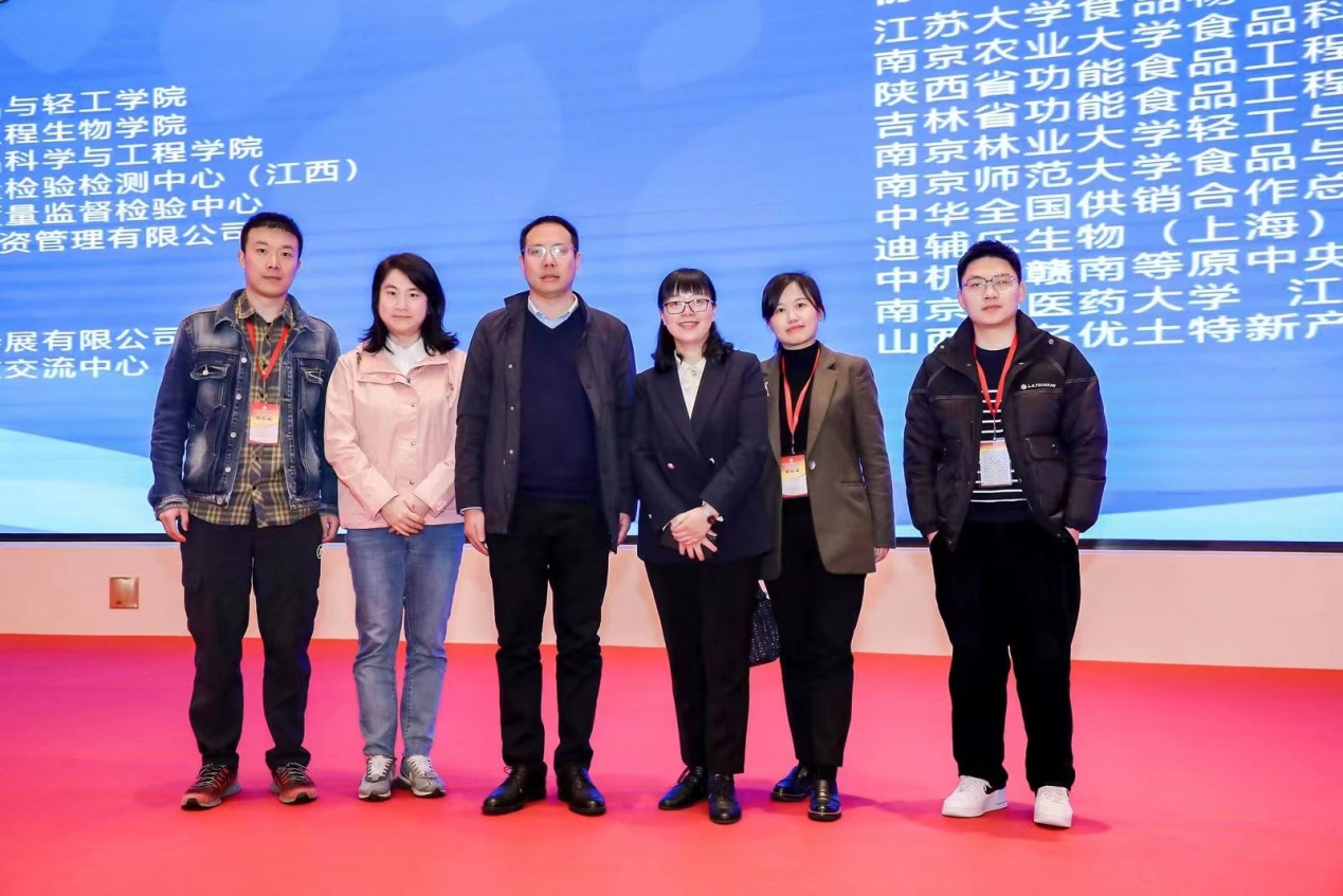 我校食品与生物工程学院院长唐洁作为嘉宾为大会开幕式致辞,副院长饶瑜作为嘉宾主持“益生菌与肠道健康”分论坛并作了题为“浮游态和被膜态益生乳杆菌对宿主肠道菌群和代谢的影响差异分析”的会场报告,分享了从传统发酵食品中筛选到具有益生活性的乳杆菌及其对宿主肠道微生态健康的影响,提出相较于浮游态,被膜态乳杆菌能够更有效的改善宿主肠道微生态健康,促进肠道黏膜免疫的观点。食品营养与安全团队杨潇在“活性成分挖掘及制备”论坛作了题为“果酒中可保留多酚的后浑浊防控技术研究模型”的会场报告,主要从减少传统果酒澄清工艺带来多酚的大量损失这一产业需求出发,建立基于3种蛋白和3种多酚的后浑浊模型并阐明其作用机制,提出保留多酚的抑制后浑浊关键技术。农产品加工与贮藏工程团队徐平康在“食品营养与健康”论坛作了题为“食品中黄酮类物质的抗衰老功能与机理研究”的会场报告,分享了通过对日常食物中抗衰老有效成分的分离和鉴定,筛选出具有饮食限制潜力的黄酮类物质,论证具有较强构效关系的黄酮类物质在多种生物模式中展现出较强抗衰老功能,未来具备应用到高等生物甚至人体的潜力。报告人进行了会议交流,得到了与会专家、学者的高度赞赏。本次参会交流的还有食品与生物工程学院党委书记熊华、食品科学与工程系系主任黄玉坤、副系主任张东。