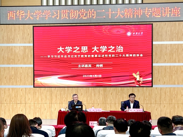 尚钢教授从西华大学第二次党代会报告谈起,对学校取得的成绩和一些经验做法表示肯定,并结合自己的所思所想所悟,带领大家对党的十八大以来习近平总书记关于教育的重要论述进行了再学习,对党的二十大报告中关于高等教育发展的重大部署和新的要求进行了解读,强调要做到“三学”,即及时学、联系实际学、掌握核心要义学。
