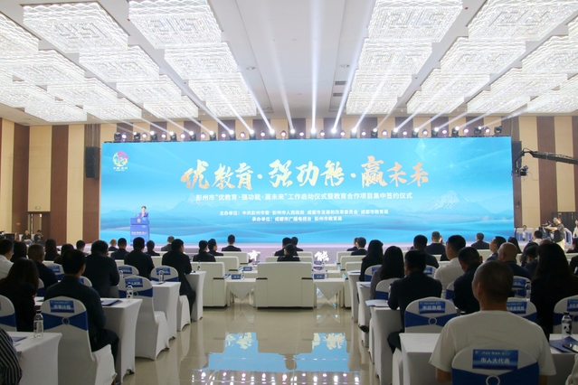 作为王勃笔下的“天帝会昌之国” “英灵秀出之乡”,彭州有着悠久的历史和灿烂的文化。4月14日,由中共彭州市委、彭州市人民政府、成都市发展和改革委员会、成都市教育局主办的彭州市“优教育·强功能·赢未来”工作启动仪式暨教育合作项目集中签约仪式在彭州市汇通湖商务区创新中心举行。成都市政协党组副书记、副主席吴凯,成都市发改委党组书记、主任、彭州市委书记王锋君,彭州市市长蒋明,成都市委教育工委书记、成都市教育局党组书记、局长熊宗辉,西华大学校长李秋实、副校长刘小兵,成都市发改委、成都中医药大学、成都石室中学、成都七中等单位的主要负责人参加了会议。