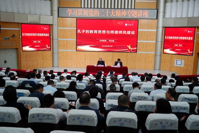 “坚持把马克思主义基本原理同中国具体实际相结合、同中华优秀传统文化相结合。‘两结合’的重大观点极大拓展了马克思主义中国化的内涵,把中国共产党人对中华优秀传统文化的地位和作用的认识都提升到新高度……”4月15日上午,西南交通大学原党委副书记何云庵教授应邀作“孔子的教育思想与师德师风建设”专题讲座。校党委副书记、纪委书记朱燕萍,校党委副书记张力,全校中层领导干部、全体辅导员参加本次学习。校党委副书记张力主持本次主题讲座。
