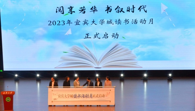 4月22日,由中共宜宾市委人才和大学城工作局、西华大学宜宾校区主办,西华大学宜宾校区图书馆承办的2023年宜宾大学城“阅享芳华 书叙时代”读书活动月开幕式在宜宾校区会堂举行。宜宾市副市长华淑蕊出席并讲话,宜宾市委人才和大学城局相关负责人,四川大学宜宾园区、电子科技大学宜宾园区、西南交通大学宜宾研究院、成都理工大学宜宾校区等12所在宜高校的相关负责人、图书馆馆长和师生代表约600余人参加了此次活动。