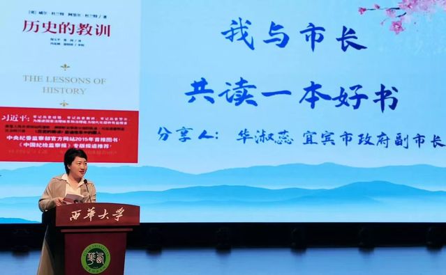 宜宾市副市长华淑蕊对西华大学活动现场所营造的书香氛围表示肯定,“一本好书是人类智慧地结晶,也是获取知识、拓展视野的重要途经之一……”此次活动邀请各在宜高校师生共同享受读书的快乐,让读书成为一种风尚。她从自身阅读经历出发,分享了自己在求学、工作等各个人生阶段阅读的书籍,在杨沫的《青春之歌》中感悟到鲜活生命的需要自我探索、自我挑战去寻找光的方向;在勃朗特的《简爱》中感悟到个体生命的平等;在余华的《活着》中感受极致的苦难……从武侠小说到科幻作品,从诗词歌赋到人生哲学,从个体命运到时代洪流,总能在一次次阅读中明智、明志、明理、明事、明仁。“读书的力量在于让我们在任何时候都有重头再来的勇气和归零的心态”,读书不仅能够交到志同道合的朋友,更能在书中与跨越时空的灵魂对话。