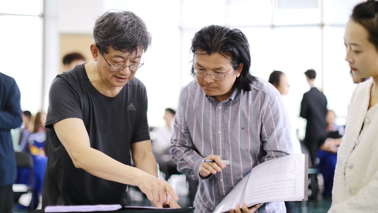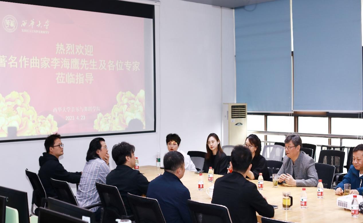此前(4月23日),著名作曲家、指挥家李海鹰先生及CCTV专家导演来校座谈交流,对音乐与舞蹈学院 “飙之梦”合唱团应邀参加4月26日中央电视台音乐频道在德阳录制的“幸福像花儿一样”交响音乐会表示感谢,并对“飙之梦”合唱团给予了技术指导。