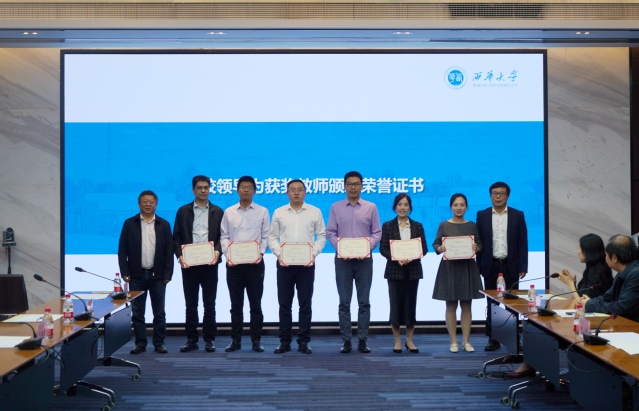 刘小兵宣读了《关于表彰西华大学2022年“泸州校友会优秀青年教师奖励基金”获得者的决定》,食品与生物工程学院钱珊、汽车与交通学院唐立、机械工程学院孔春岩、能源与动力工程学院史广泰、美术与设计学院孙虎、理学院吴真等6位教师获得奖励基金。张力、刘小兵为获奖教师颁发荣誉证书,封晓川、张静为获奖教师颁发奖金。