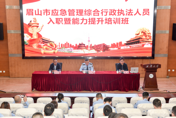 5月9日上午,眉山市应急管理综合行政执法人员入职暨能力提升培训班开班仪式在郫都校区图书馆报告厅二厅举行。眉山市应急管理局党委委员、执法支队长叶伟,西华大学应急管理学院院长舒志乐出席开班仪式。