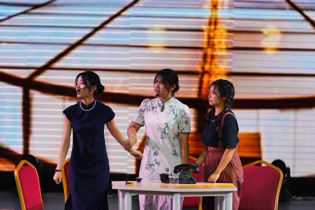 在第二篇章“火热青春”中,墨雅民乐协会带来民乐《喜洋洋》,不同乐器的碰撞奏响美妙的乐章,清脆悦耳,曲调流畅;服章之华汉服社表演的国风舞《霓裳》,起舞成诗、温婉古典,带领观众走入“一片亭亭空凝伫,趁西风霓裳偏舞”的唯美意境;紫薇星话剧社的演员们动情地演绎感人的爱情故事,拼客舞蹈协会用舞步展现军人的飒爽英姿。