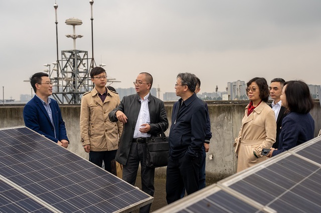在雷霞的带领下,考察组先后来到六教A区天台、三楼、二楼和一楼参观考察工程中心,由学院专业实验中心主任孙章为考察团进行主要讲解,重点介绍了学院及其共建单位在微电网相关研究方向取得的代表性成果。