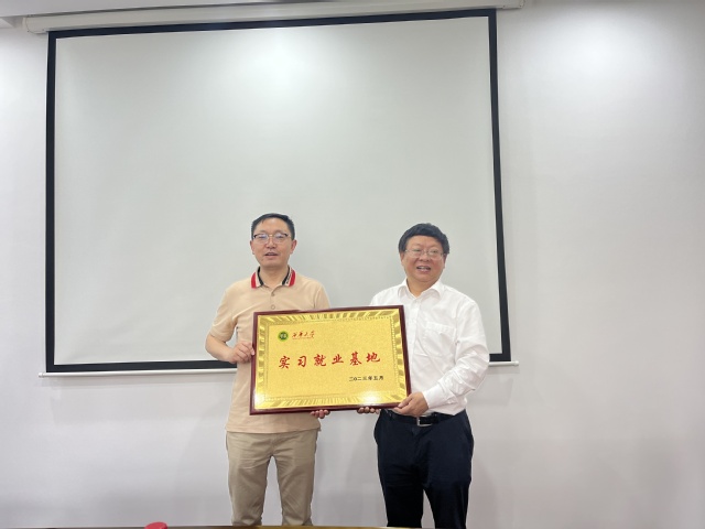 会议期间,在与会人员的见证下,刘小兵代表学校向吴加富校友的企业——成都富纳汇科技有限公司授予“西华大学实习就业基地”牌匾,并向吴加富校友颁发捐赠鸣谢牌。参加会议的有成都富纳汇科技有限公司总经理代吉平、副总经理黄维,副总经理、1997级机电专业校友徐朝均,学校校友工作处处长王丽娟,副处长高华、邱健,应用技术学院党委副书记杨万能,机械工程学院党委副书记李强。