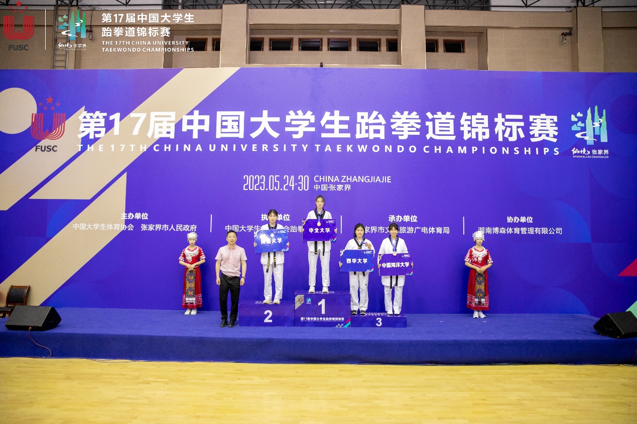 5月26日至29日,第17届中国大学生跆拳道锦标赛在张家界市第一中学体育馆举行,来自浙江大学、中山大学、中国地质大学(北京)等185所高校的1500余名运动员参赛,参赛规模创历届之最。我校体育学院2019级刘基辉同学荣获高水平组男子87公斤级亚军、2021级徐海龙同学荣获女子高水平组62公斤级季军、2020级陈一鸣同学获得“优秀运动员”称号。刘利丽老师获得优秀教练员称号、西华大学获得“体育道德风尚奖”。