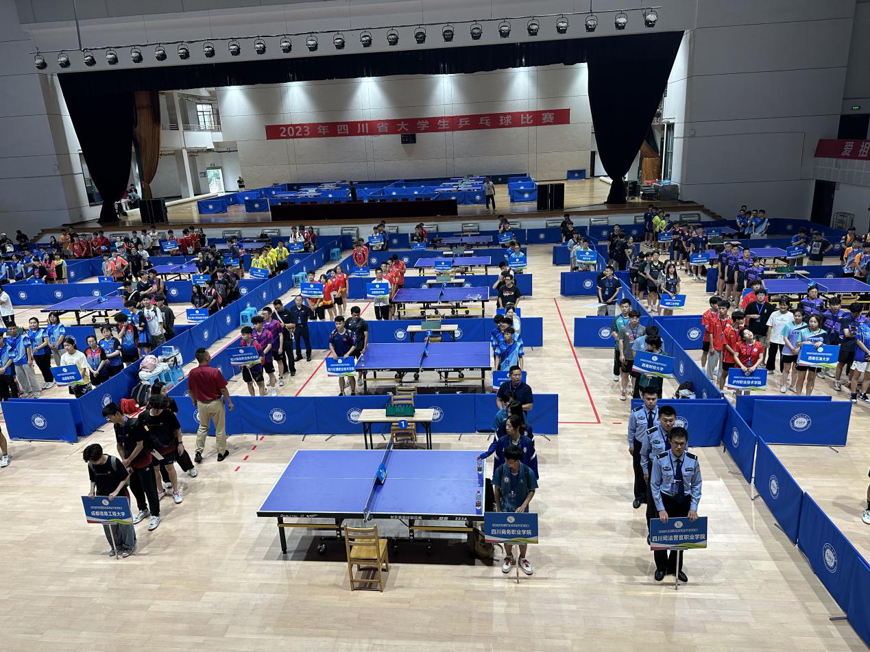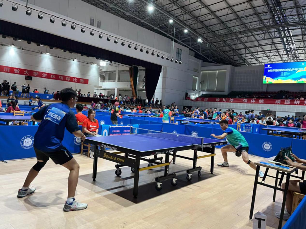 近日,由四川省教育厅、四川省大学生体育协会主办的2023年四川省大学生乒乓球比赛在成都信息工程大学体育馆举行,来自省内77所高校的950余名运动员,分为甲、乙、丙、丁四个组别展开了激烈的角逐。