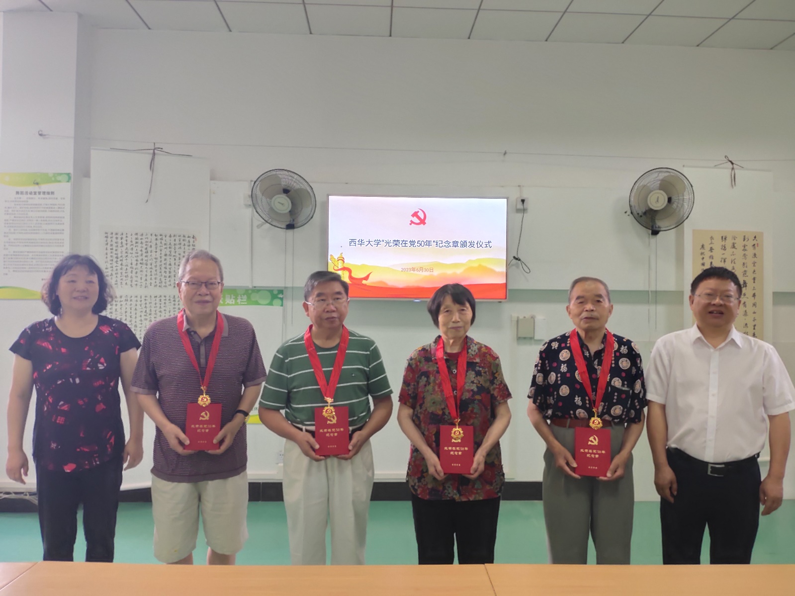 6月30日上午,我校在夕阳红活动中心201室举行了“光荣在党50年”纪念章颁发仪式,表彰为党和学校事业默默奉献的老党员,副校长刘小兵向党龄50年的老党员颁发了纪念章。