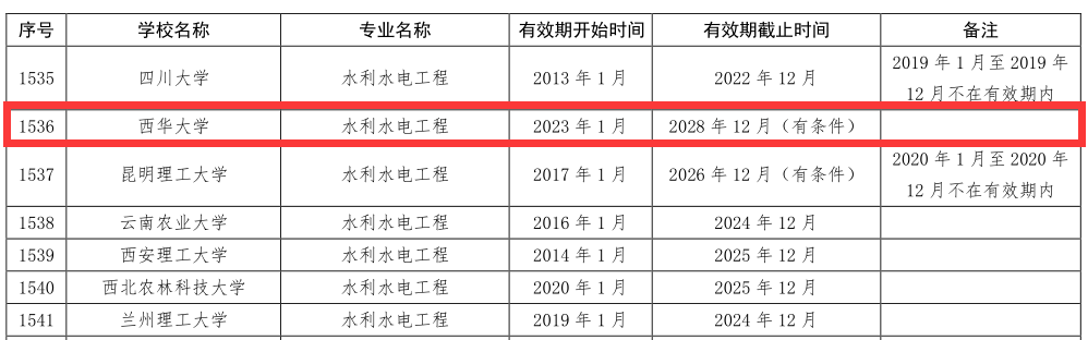 近日,中国工程教育专业认证协会公布了2023年通过工程教育专业认证的专业名单,西华大学水利水电工程专业位列其中,有效期6年(2023年1月至2028年12月)。
