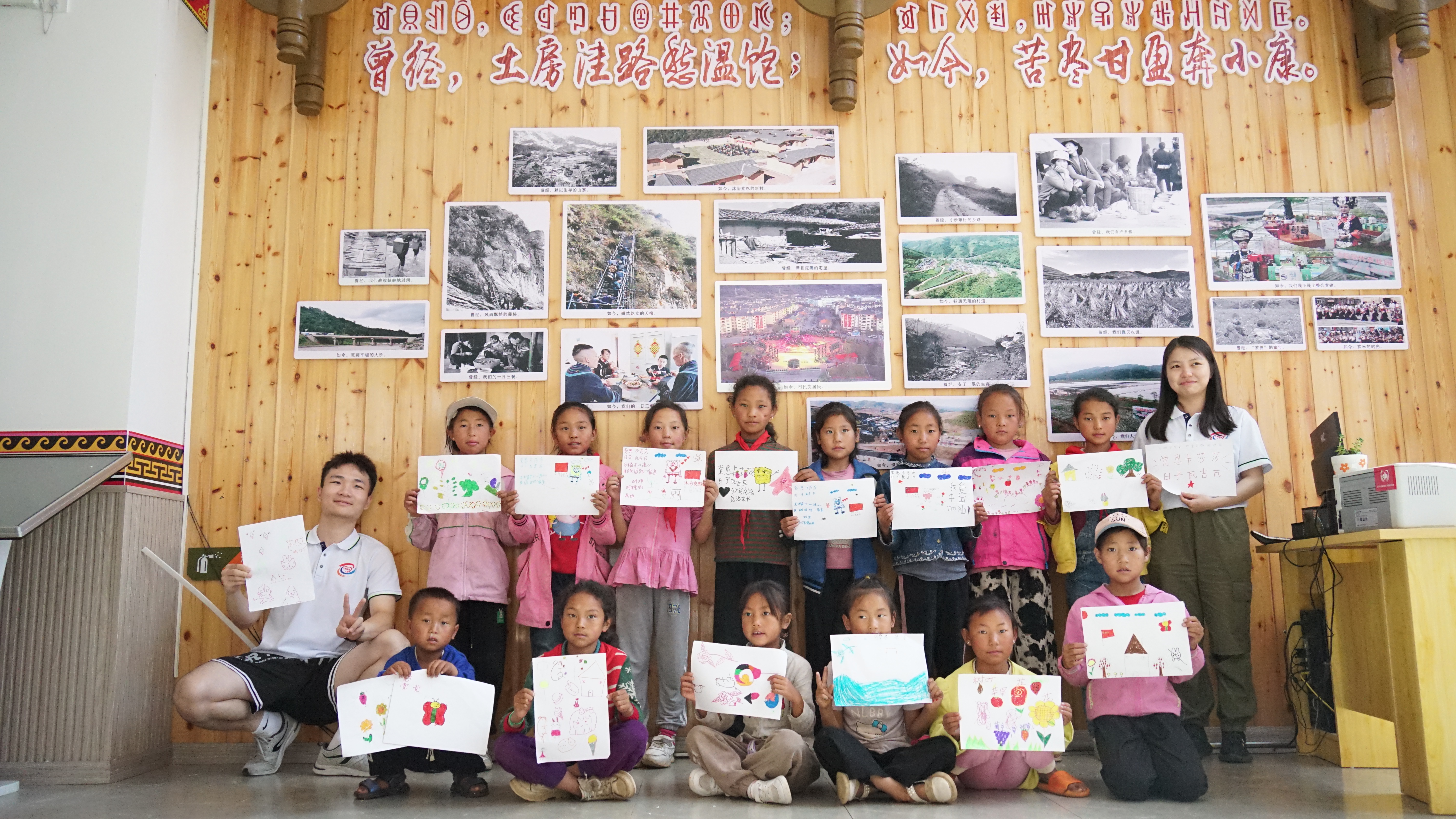 沐恩邸社区,意为“沐浴在党恩下的府邸”,是昭觉县最大易地搬迁集中安置社区,共有居民6200余人。实践队员在沐恩邸社区面向学前儿童和中小学生开展了为期2天的普通话教学活动,通过诵读经典、古诗接龙、传唱红歌、习写汉字等方式,在提升当地儿童普通话学习意识和使用能力的同时,给予温情陪伴和悉心关怀,帮孩子们度过一个充实的假期。