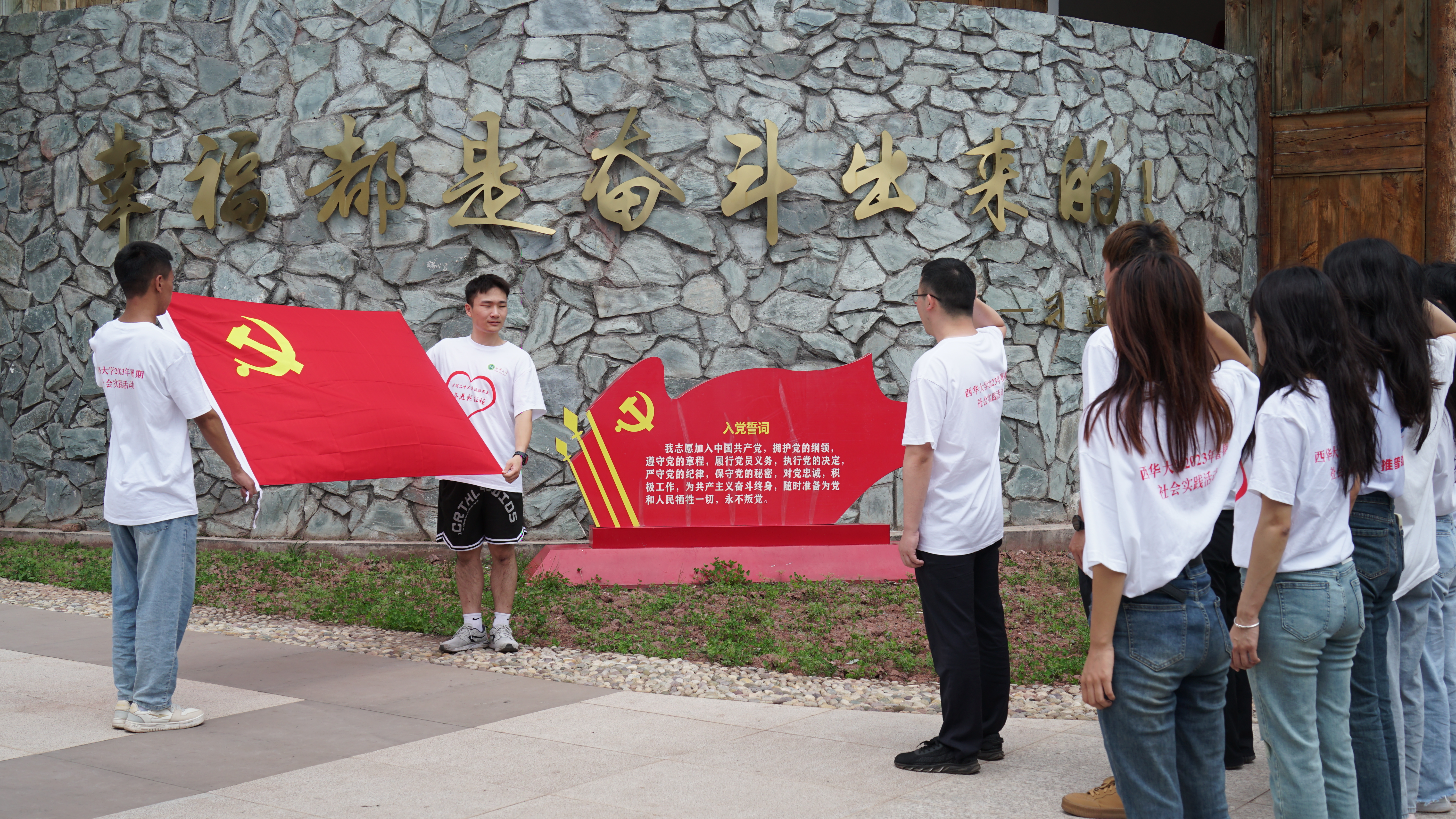 “我志愿加入中国共产党......”在村史馆前,实践队的全体党员重温入党誓词,感悟共产党人的初心使命。