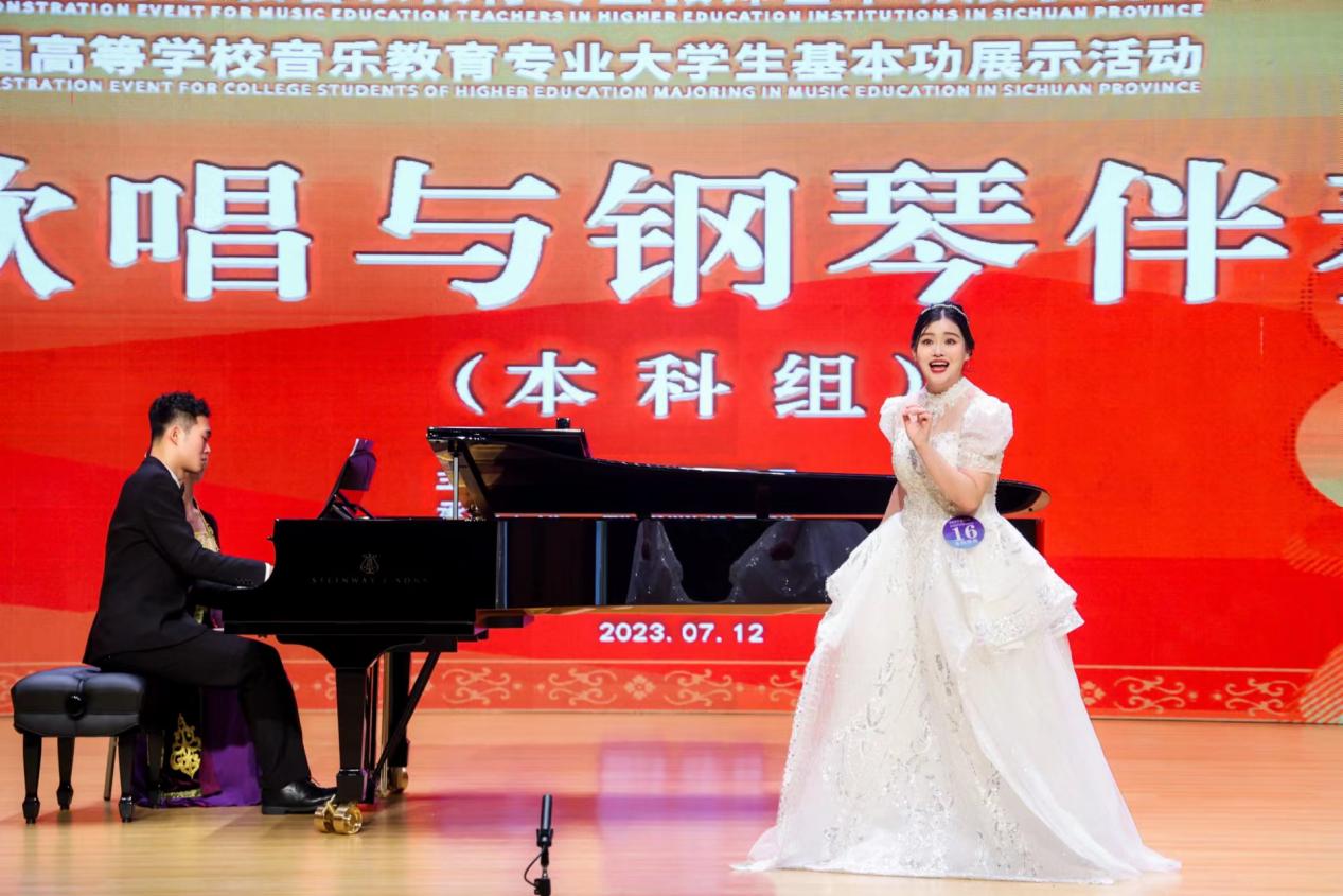 7月9日至14日,由四川省教育厅主办、阿坝师范学院承办、四川省教育科学研究院协办的四川省第三届高等学校音乐教育专业教师基本功展示活动和四川省第九届高等学校音乐教育专业大学生基本功展示活动顺利举行。我校教师程燕、马悦以及2020级本科生徐铭均、郭嘉玲、朱可馨代表学校参赛。经过5天的激烈角逐,音乐与舞蹈学院参赛师生获得优异成绩,团队获本科组团体第四名,徐铭均获得个人全能一等奖,其他师生获个人全能二等奖、单项奖等多个奖项,学校获优秀组织奖。