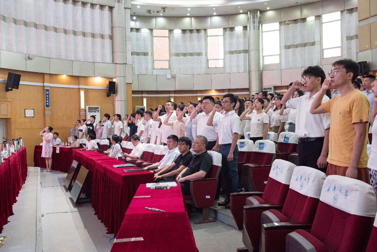 党委教师工作部部长、人事处处长樊群超宣读了培训班班委名单。班委代表、雷斌恺老师作了发言发言,教师代表赵津晨老师作了发言发言。开班式上,全体新入职教职工进行了入职宣誓,并签订了师德师风承诺书。