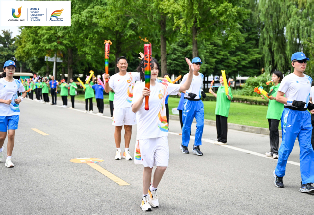 西华大学优秀教师代表彭必友,优秀学生代表韩晋琳、李嫣睿、吴君浩、王茂作为火炬手参加了火炬传递。他们表示,将积极发扬大运精神,在奋斗中书写青春篇章,为祖国的发展与建设贡献力量。