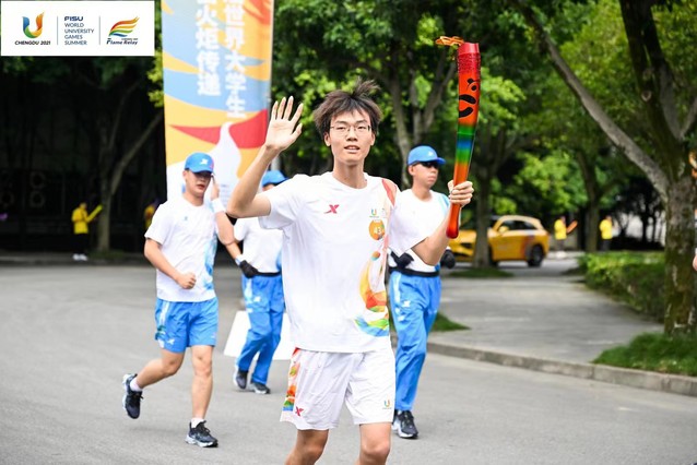奋斗青春,放飞梦想。7月20日,成都第31届世界大学生夏季运动会火炬传递活动来到西华大学郫都校区。